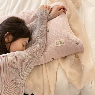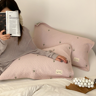 韩式 家用成人吸汗透气全棉枕头巾四防头油加大 纱布枕巾纯棉一对装