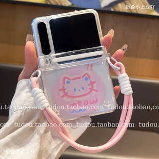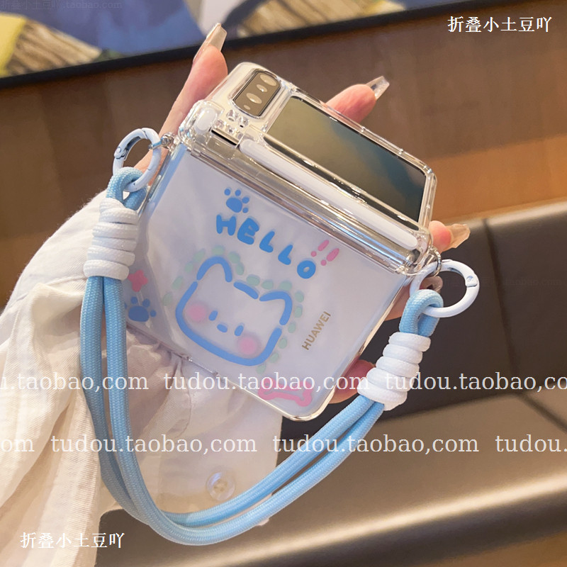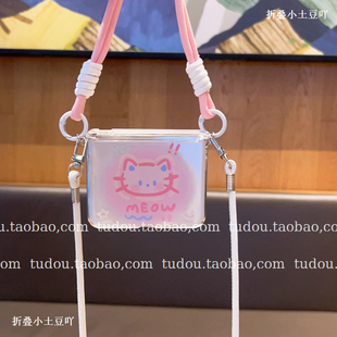 6手提挂绳全包铰链防摔超薄女 阔折叠保护套斜挎zflip7 新品 适用华为purax手机壳透明中轴磁吸可爱猫咪X典藏版