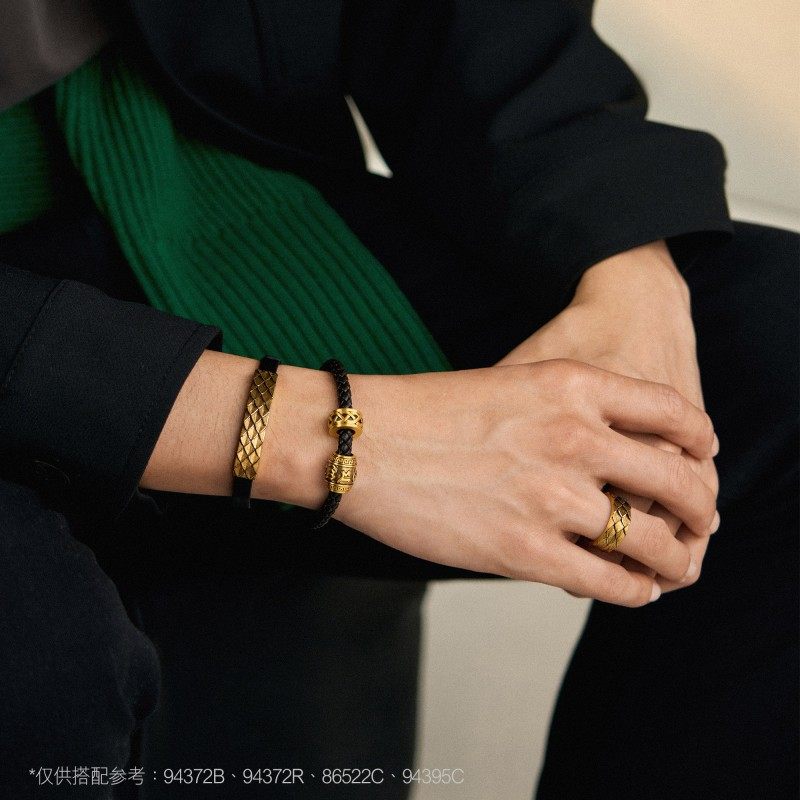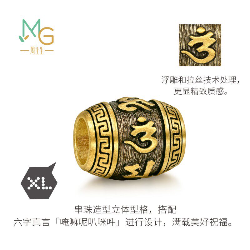 周生生CharmeXL酷黑六字大明咒足金转运珠黄金串珠94395C 配绳