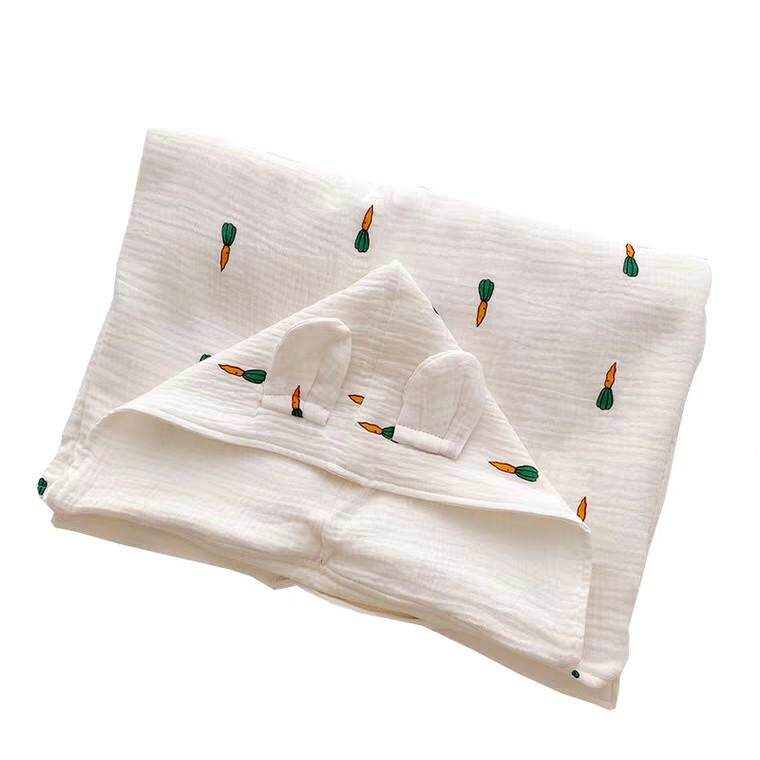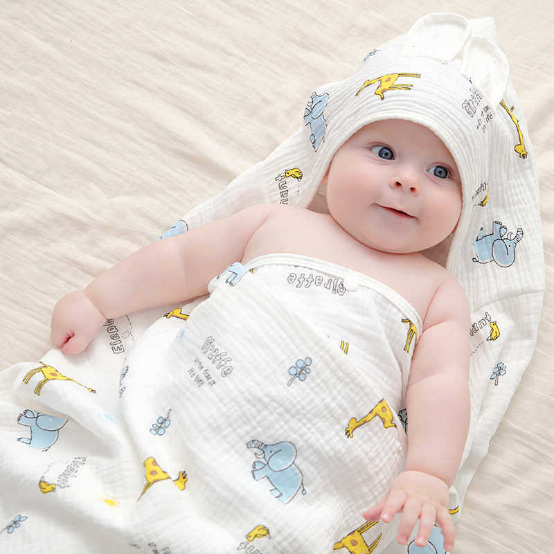纯棉四层纱布宝宝浴巾婴幼儿童可穿带帽浴袍超柔吸水速干披风斗篷