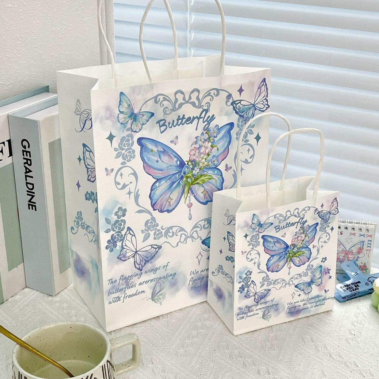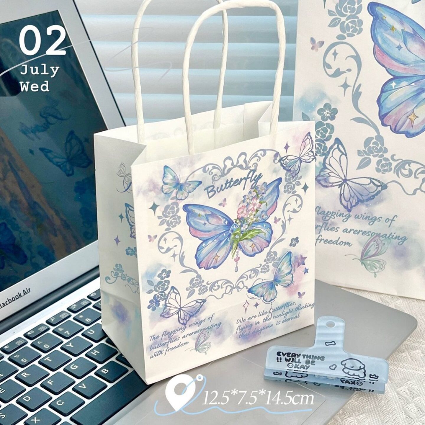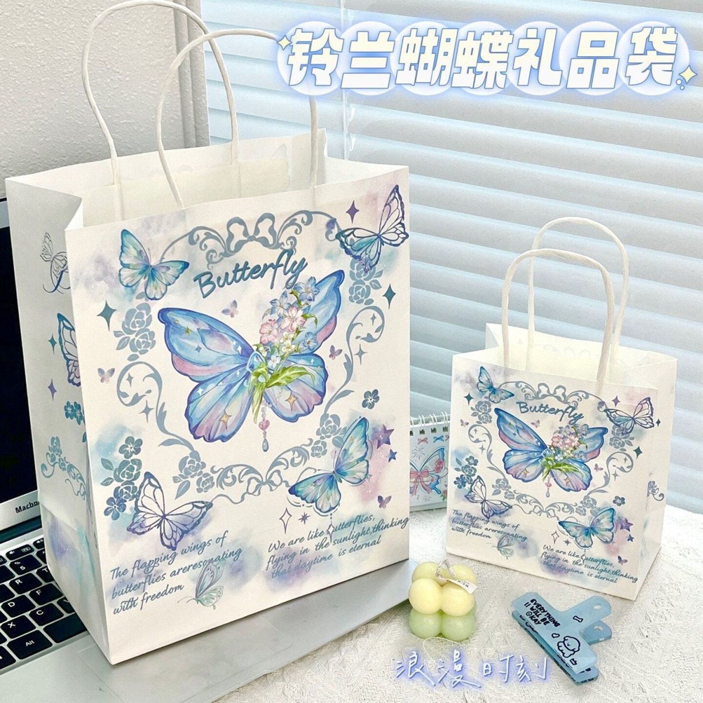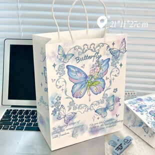 新款 袋手提便携精美牛皮纸袋 ins风铃兰蝴蝶高颜值礼品袋礼物包装