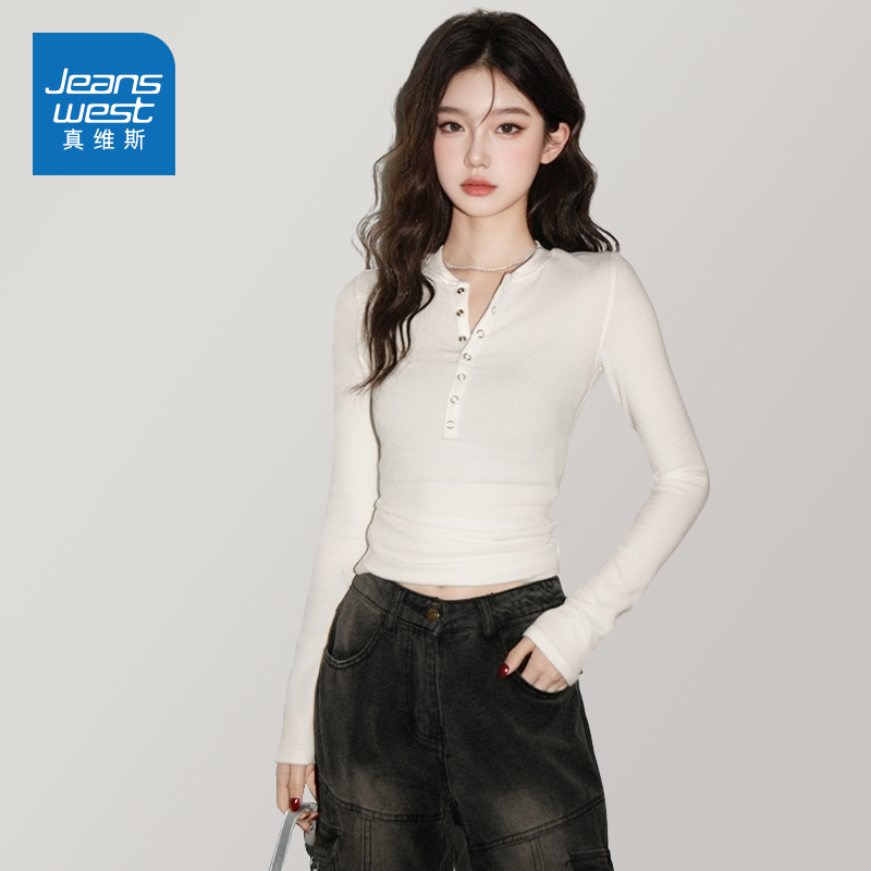 内搭打底衫 NOW真维斯黑色长袖 短款 秋修身 青少年上衣 女t恤2025新款