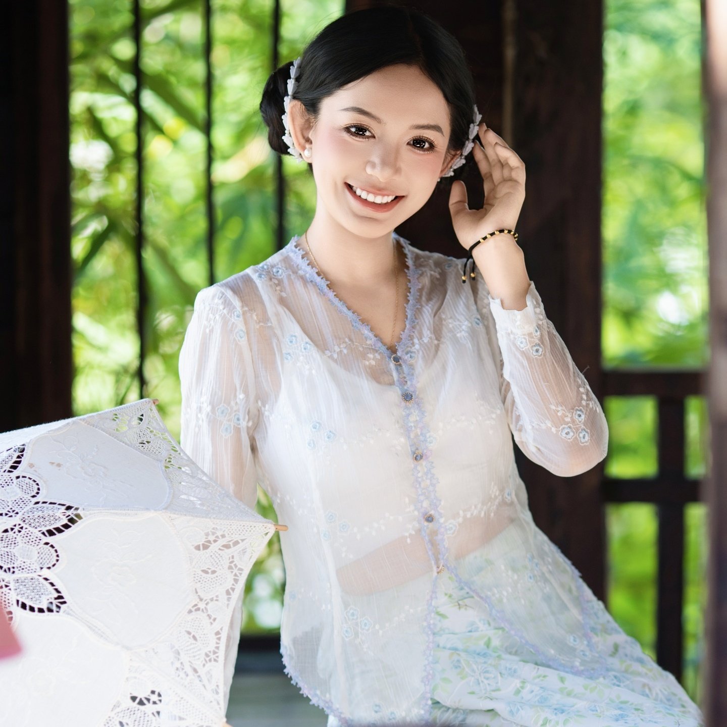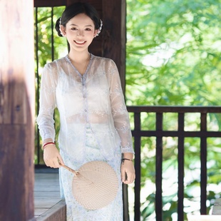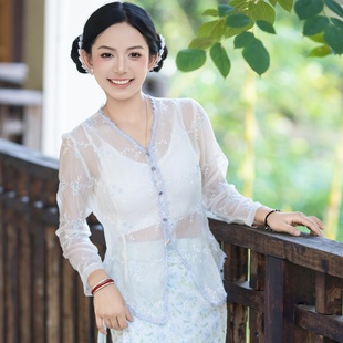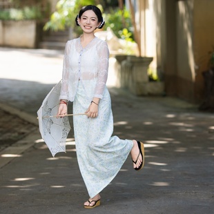 碎花筒裙套装 柔美蓝色系绣花上衣 邂逅南洋风情小娘惹同款 沙芭利