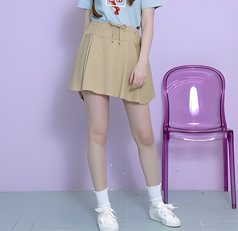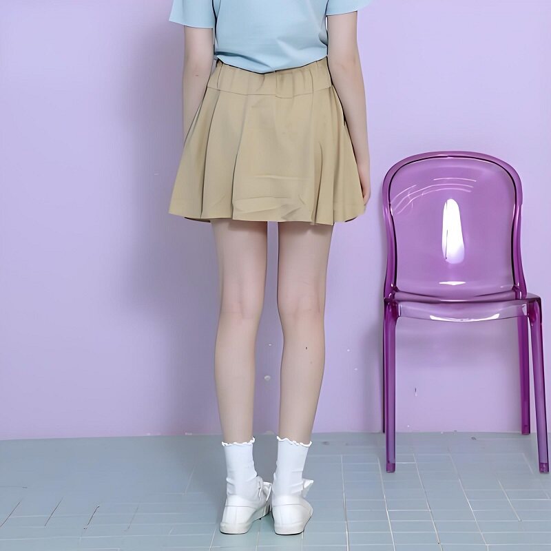 E家夏季 简约纯色系带松紧腰半身裙短裙女EEWH82515S 韩版
