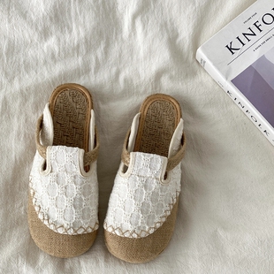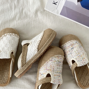 懒人凉拖 一脚蹬渔夫鞋 喜叔国风亚麻透气包头拖鞋 女夏外穿2026新款