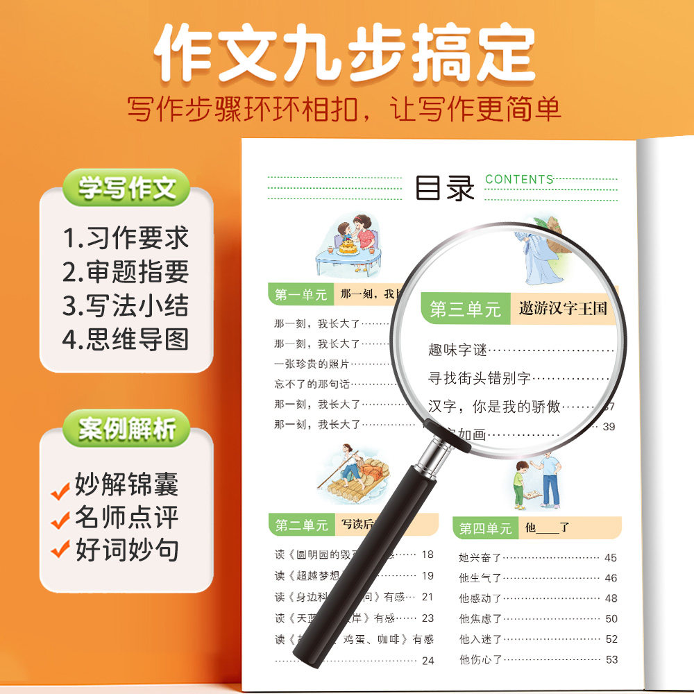 素材积累老师推荐 小学生作文大全五年级上下册作文书黄冈优秀作文满分公式 五感法写作文 2026新版 五年级下册语文同步作文人教版