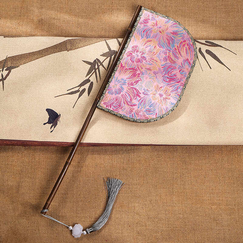 古风刀扇战国袍扇子遮面便面人鱼泪古风紫竹长柄汉服走秀拍照道具