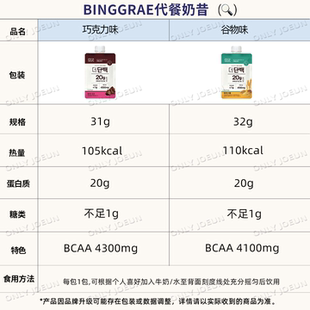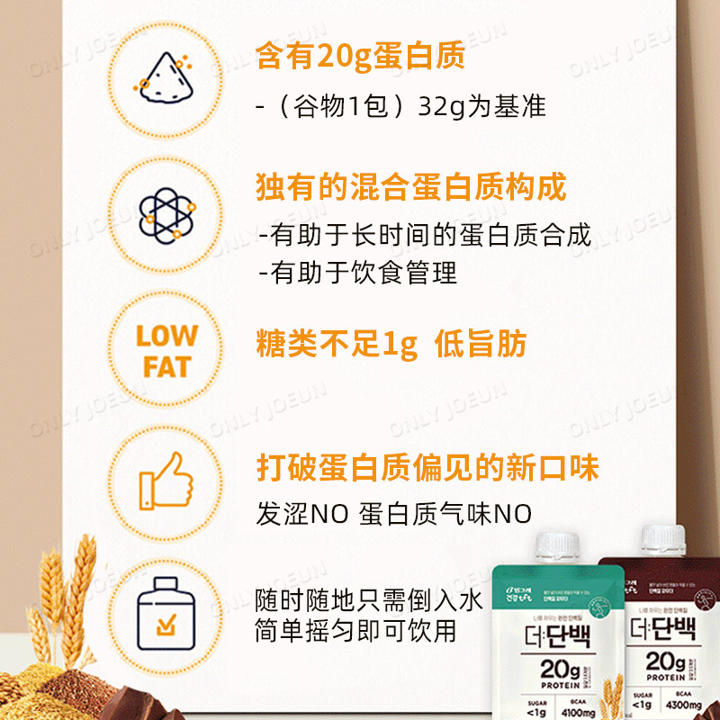 韩国BINGGRAE蛋白质代餐奶昔谷物味巧克力味饱腹代餐20g高蛋白