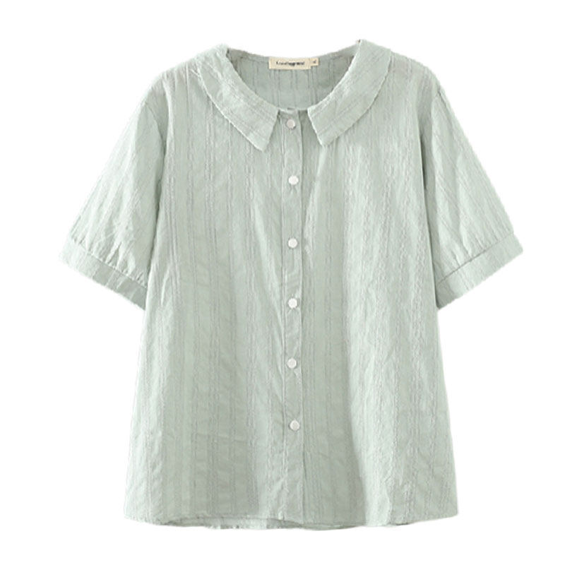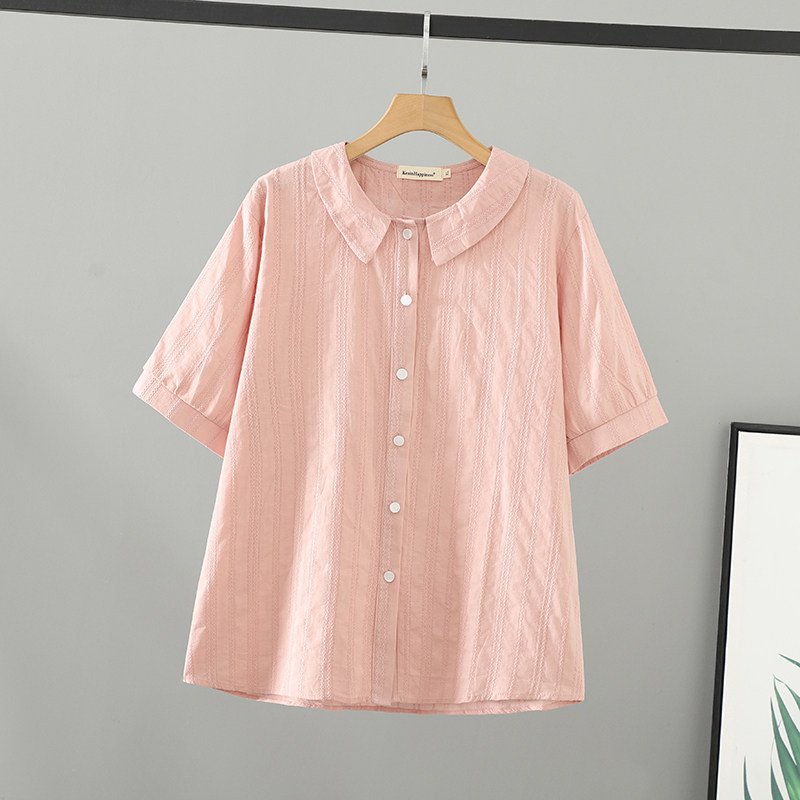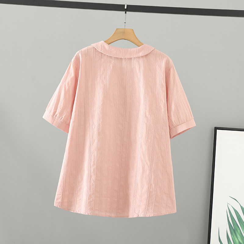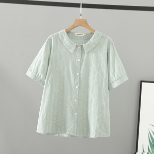 韩系小娃娃领纯色提花衬衫 胖mm夏装 女装 大码 女200斤减龄衬衣 新款