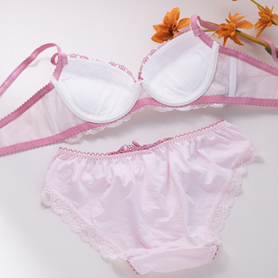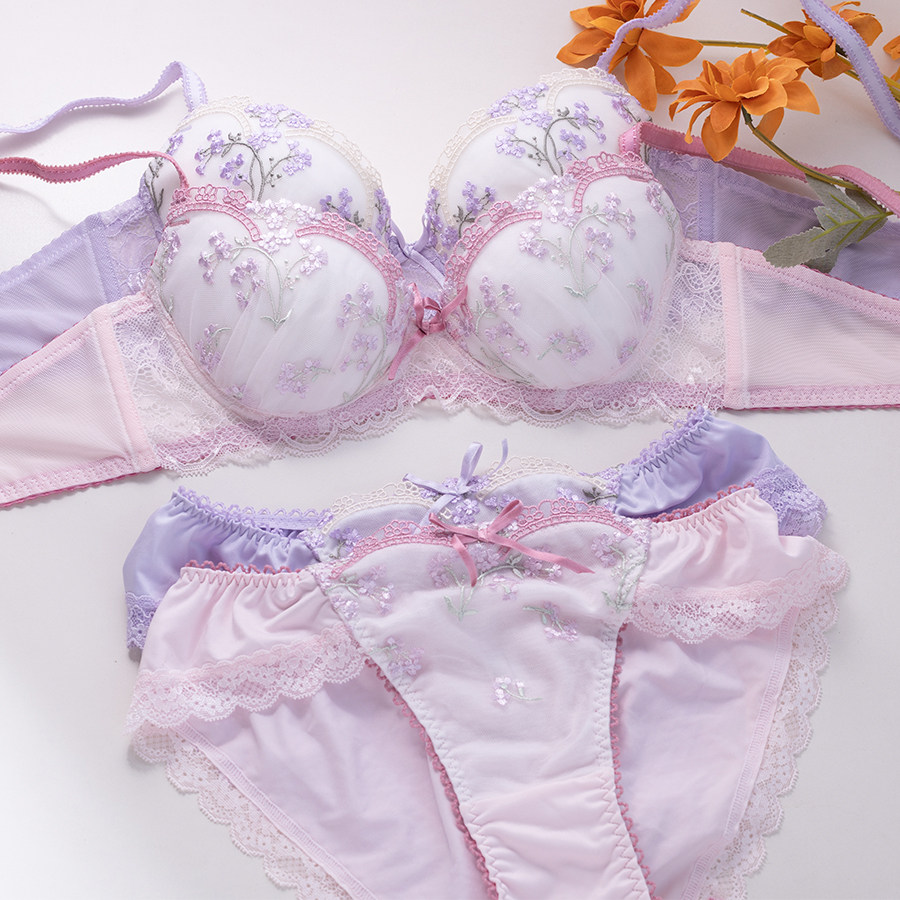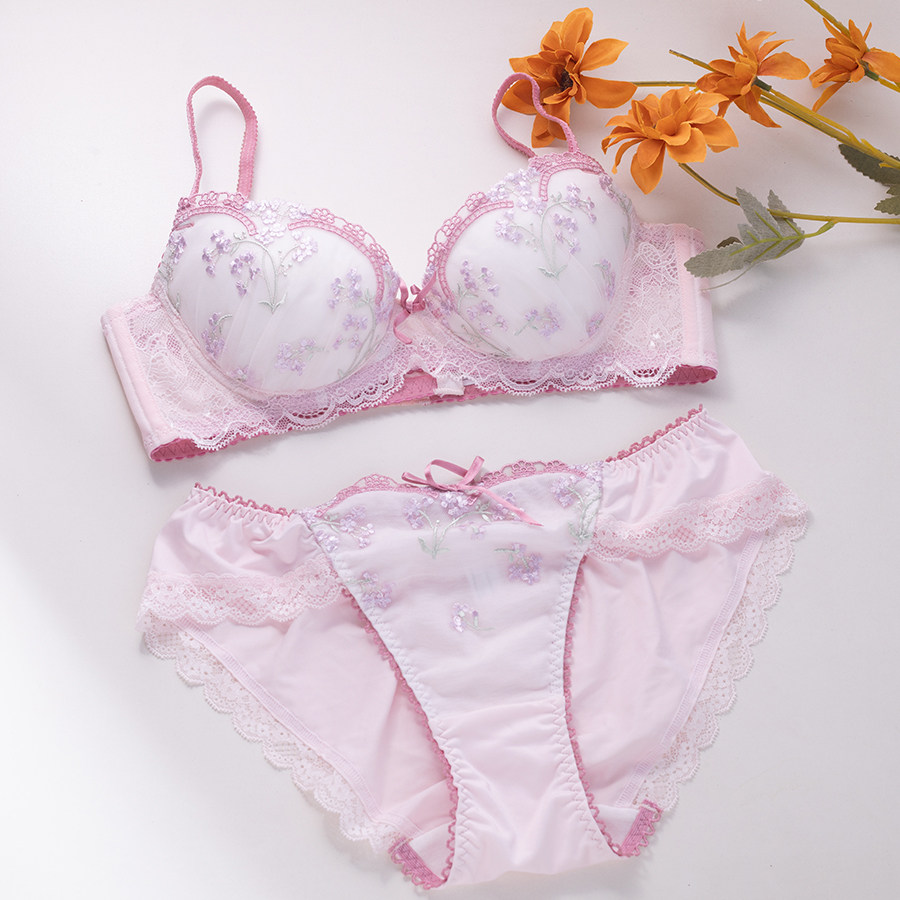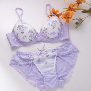 日系少女甜美刺绣花内衣套装 小胸聚拢显大蕾丝可爱圆盘胸薄文胸女