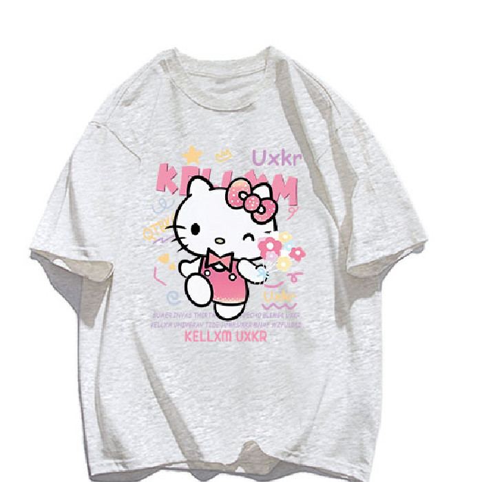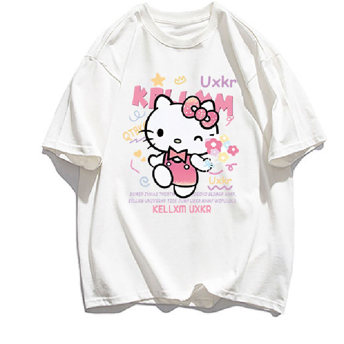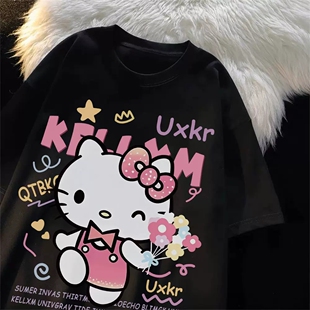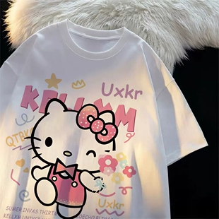 宽松oversize半袖 T恤女夏季 上衣 重磅卡通凯蒂猫印花纯棉短袖 美式