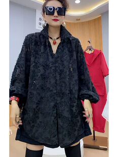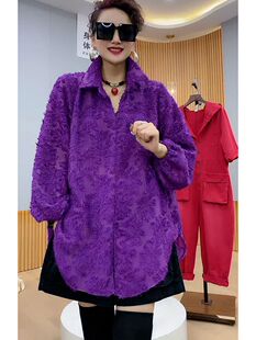女正肩显瘦紫色时髦轻奢防晒上衣 oversize遮肚衬衫 中长款 宽松大版