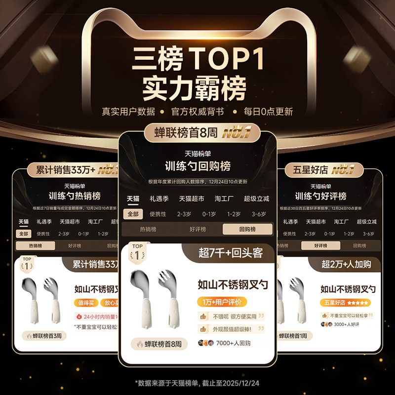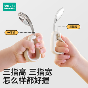 如山宝宝自主进食辅食勺子婴儿学吃饭训练儿童不锈钢餐具元 宝叉勺