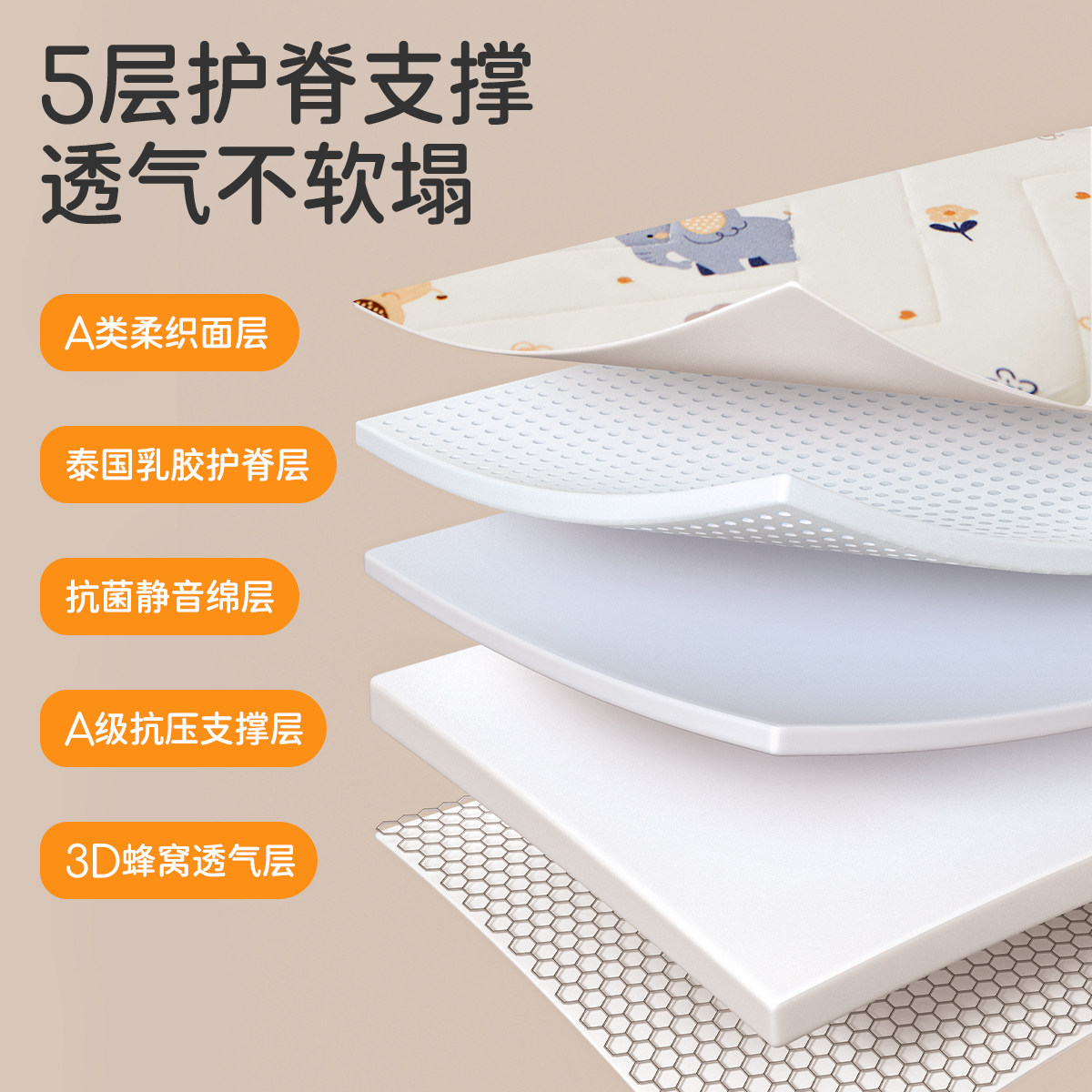 婧麒儿童床垫乳胶护脊无甲醛婴儿床拼接床垫幼儿园专用软垫家用单