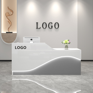 烤漆前台接待台公司前台美容院柜台白色收银台 简约现代弧形吧台