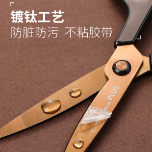 日本PLUS普乐士办公剪刀防锈弧线刀刃尖保护套剪子便携家用带保护套175镀钛不粘胶安全厨房用品裁缝手工剪纸
