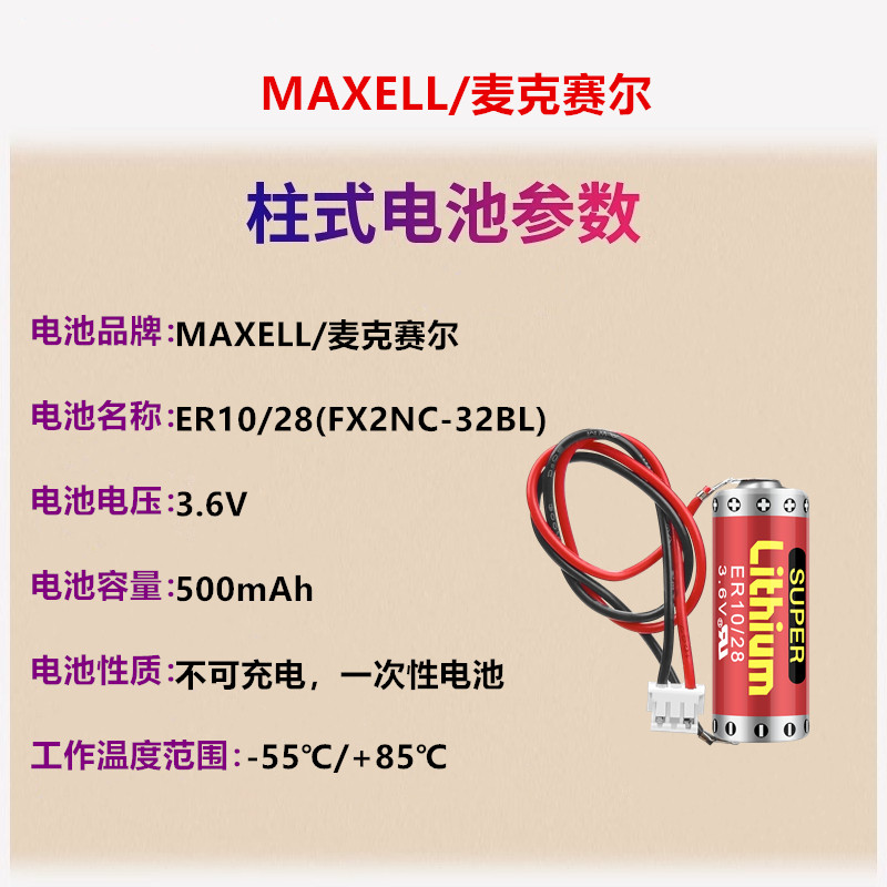 FX2NC MAXELL万胜ER10 锂电池ER10280适用于三菱plc 3.6v 32BL
