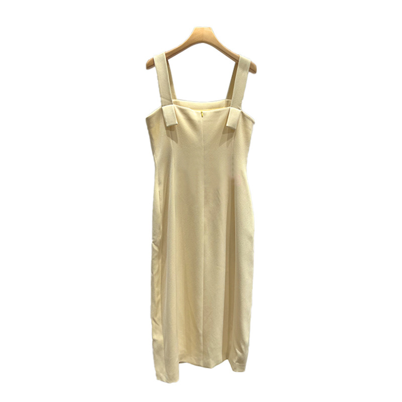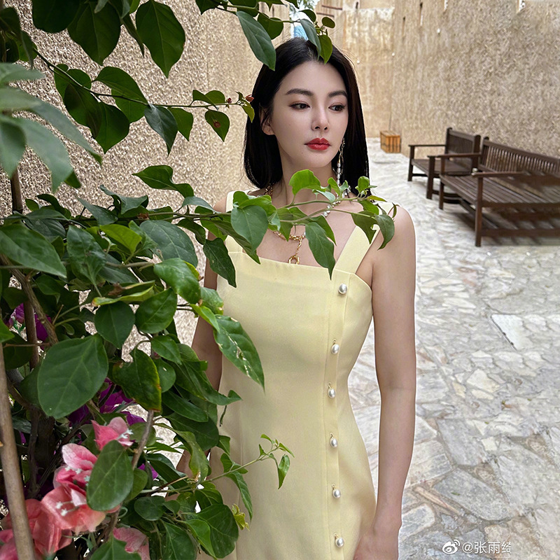 香港张雨绮同款 质感吊带收腰小个子中裙开叉单排扣连衣裙女 法式