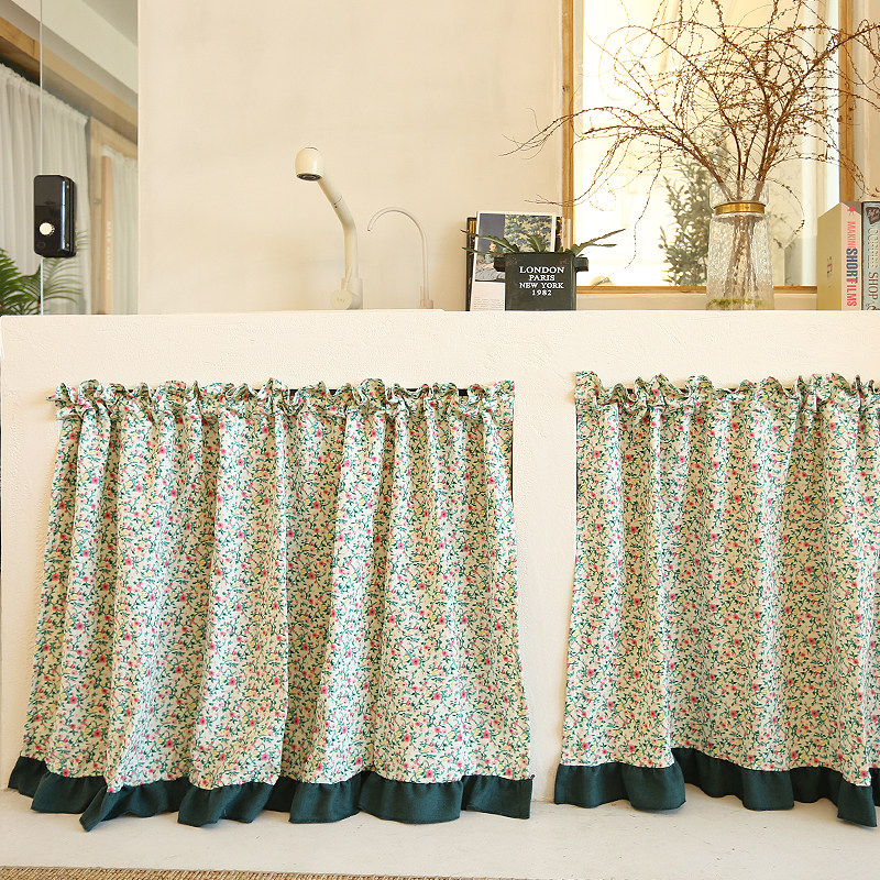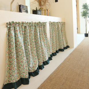 英式 粘贴魔术贴定制 田园碎花遮挡帘小窗帘半帘挂钩免打孔门帘韩式