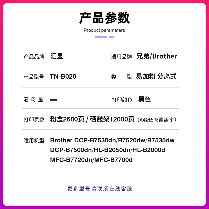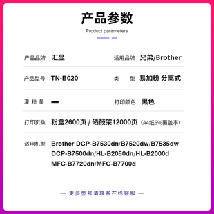B7530DN碳粉盒B7500D 2050DN晒鼓TN 7520 B2000 B020高清加黑 7535DW激光打印机墨盒硒鼓HL 汇显适用兄弟DCP