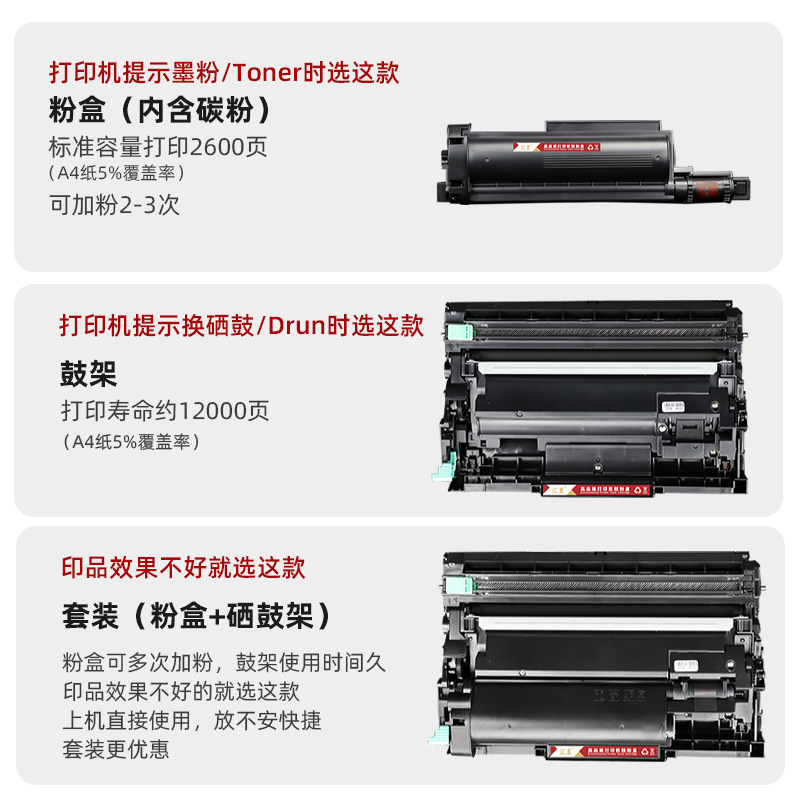 7080D 7480D 7180DN 7880DN 2260D打印机2312墨盒DR2350 众诚适用兄弟7080硒鼓TN2325粉盒MFC HL2560DN 7380