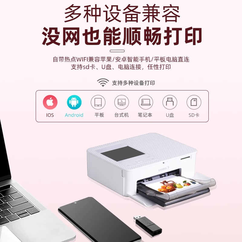 佳能CP1500照片打印机Canon家用小型手机无线便携式 相片冲印机证件照专用迷你随身口袋图片热升华打印机1300