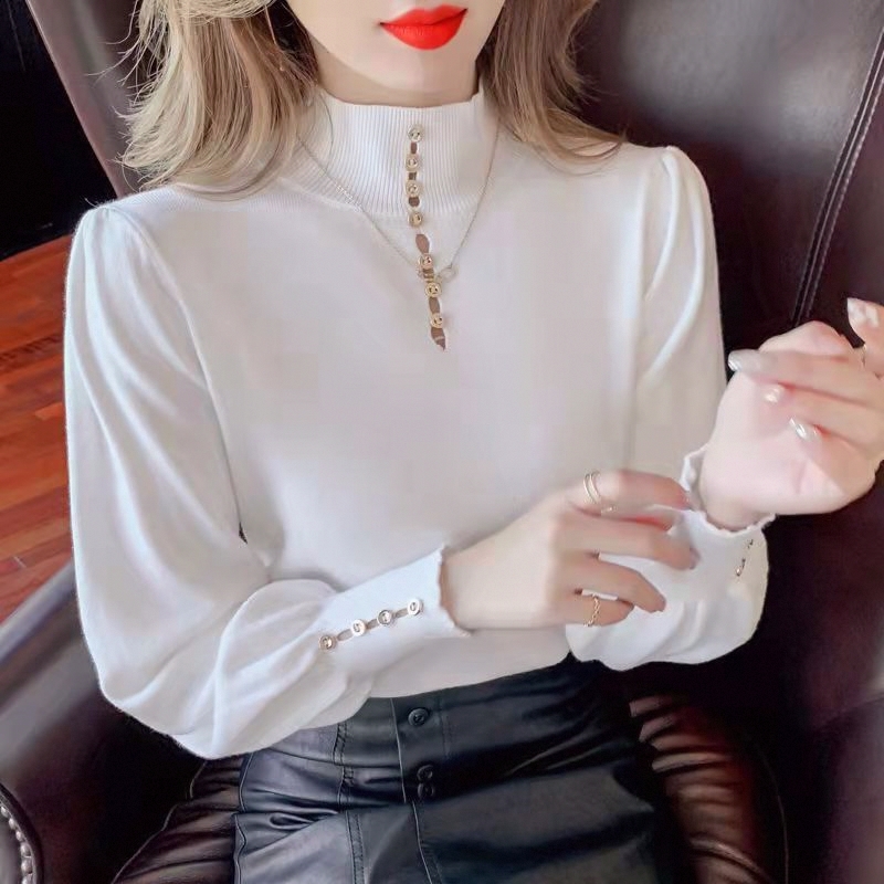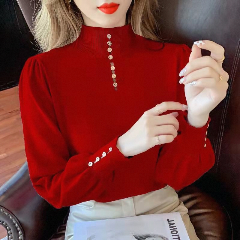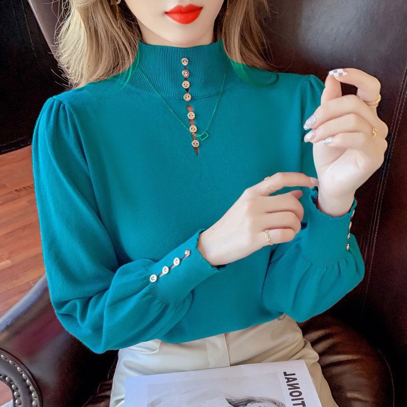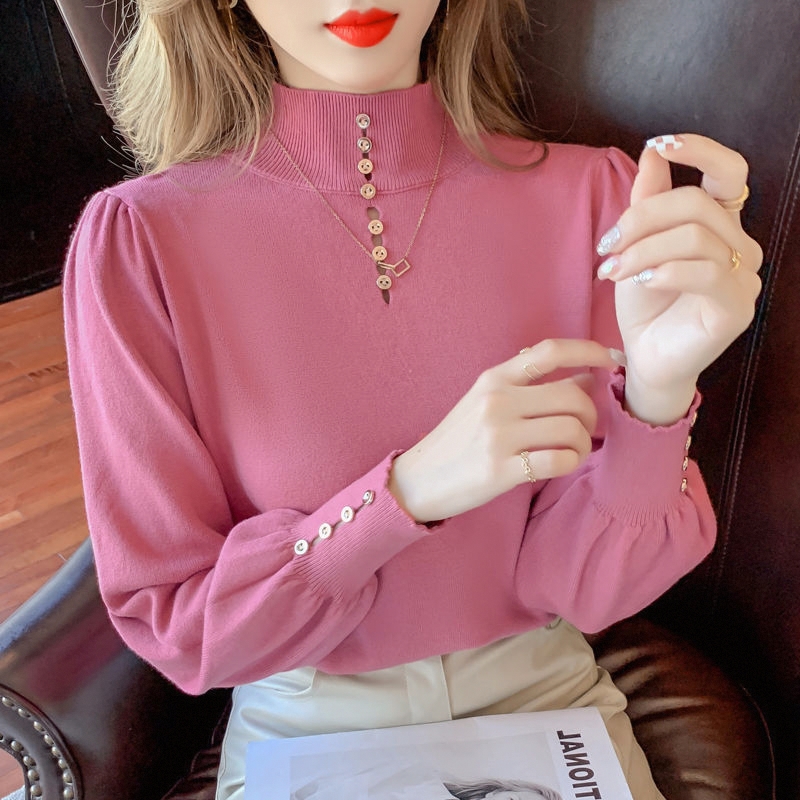 针织长袖 洋气泡泡袖 上衣宽松外搭 打底衫 半高领毛衣女2025春秋冬款