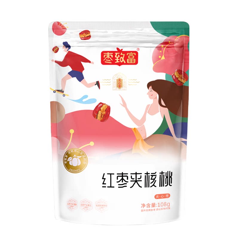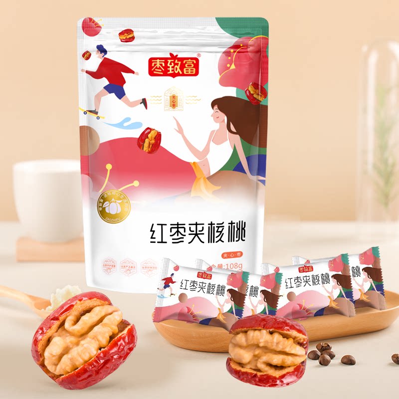 枣致富红枣夹核桃仁新疆108g 包特产灰枣夹心孕妇儿童休闲零食