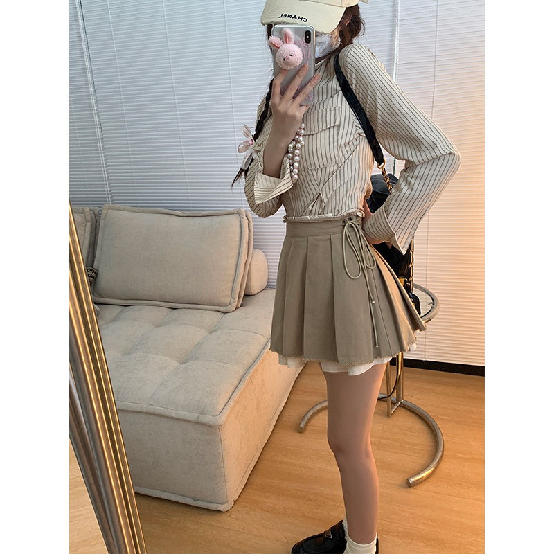 pusumede 高级a字毛呢百褶裙女气质显瘦防走光半身短裙 搭配帮手