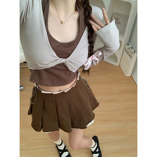 包臀低腰短裙性感简约纯色基础半身裙 复古棕色一片式 FUNOFF 美式