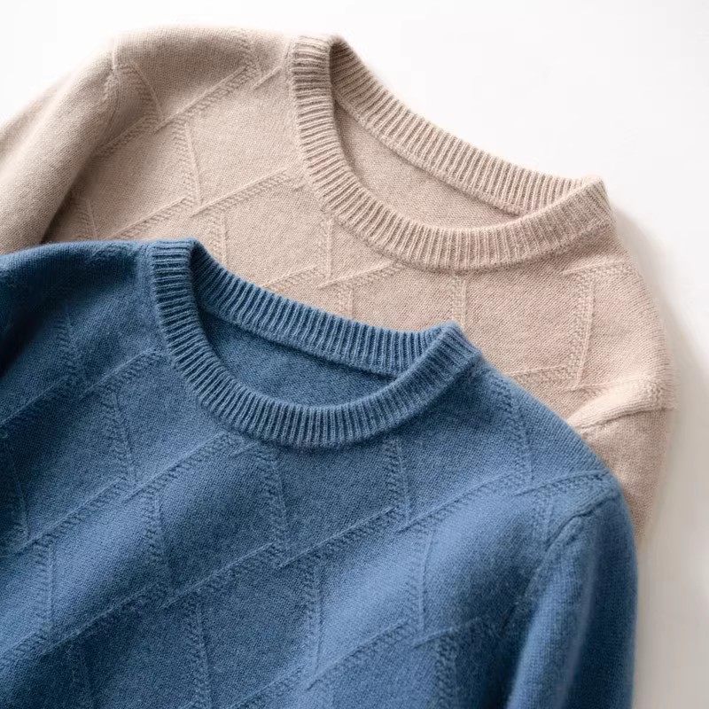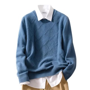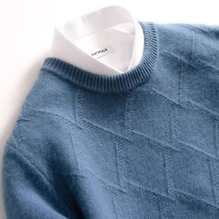 纯色羊绒宽松针织衫 加厚圆领打底衫 冬季 鄂尔多斯市产毛衣男羊毛衫