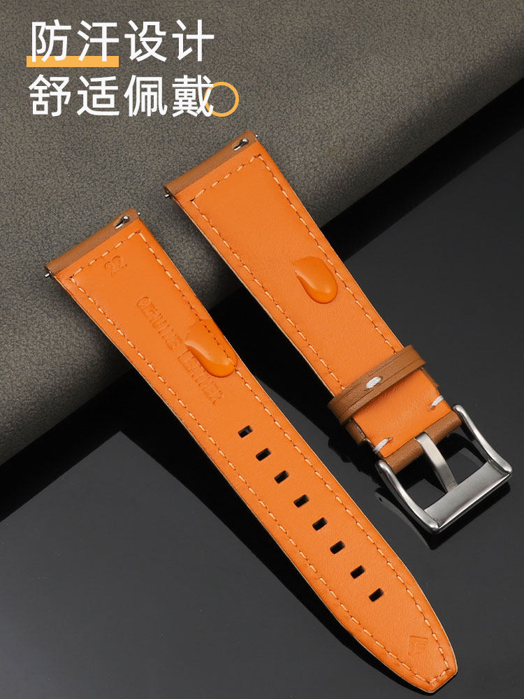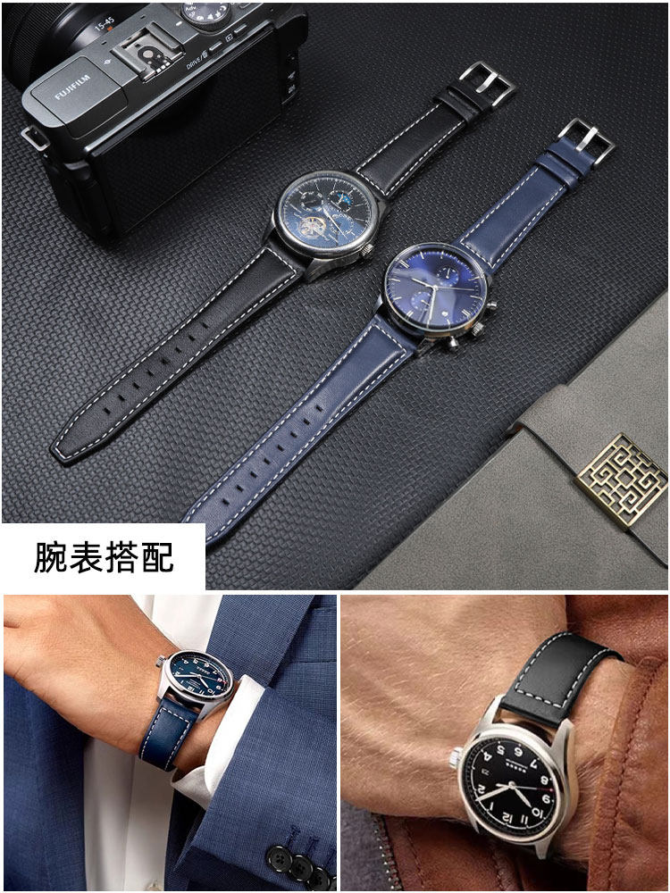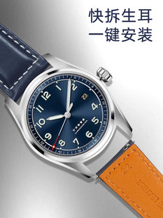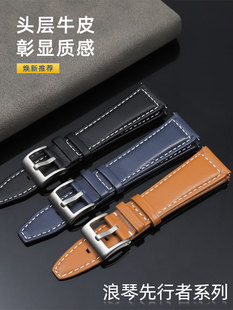 蓝色牛皮带21mm 款 适配浪琴先行者真皮表带男康卡斯L3.810 811原装