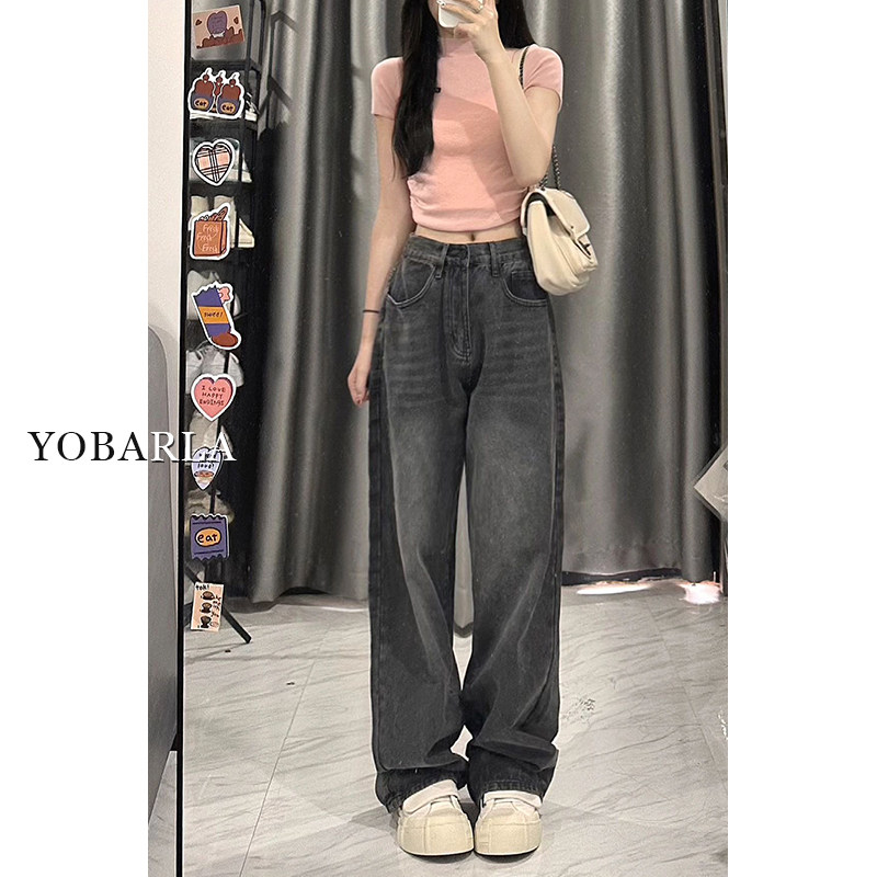 SUITEDALL冰蓝色宽松直筒牛仔裤 子 水洗猫须百搭通勤Cleanfit长裤
