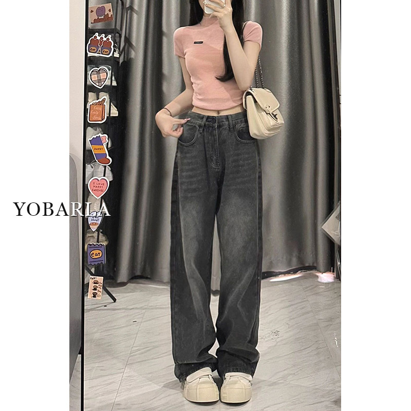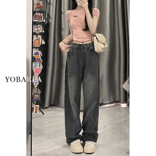 宽松直筒微喇叭百搭牛仔裤 SUITEDALL 不褪色 原色黑牛仔裤 2021M
