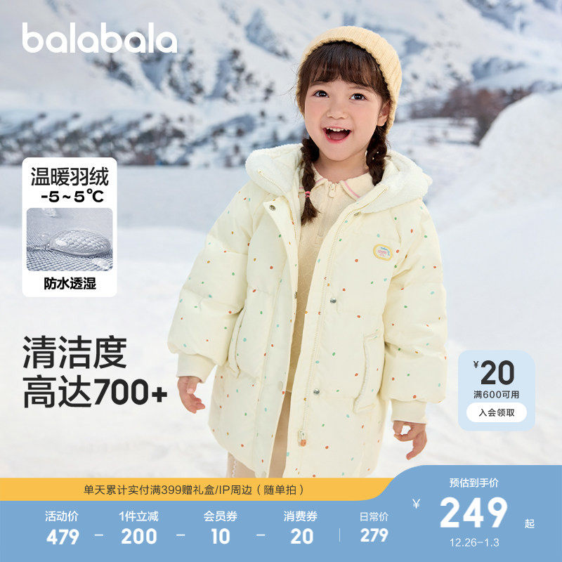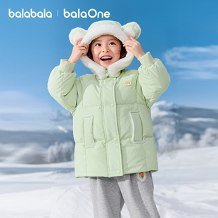 保暖户外潮 甜美可爱连帽上衣厚款 巴拉巴拉童装 儿童羽绒服女童冬装