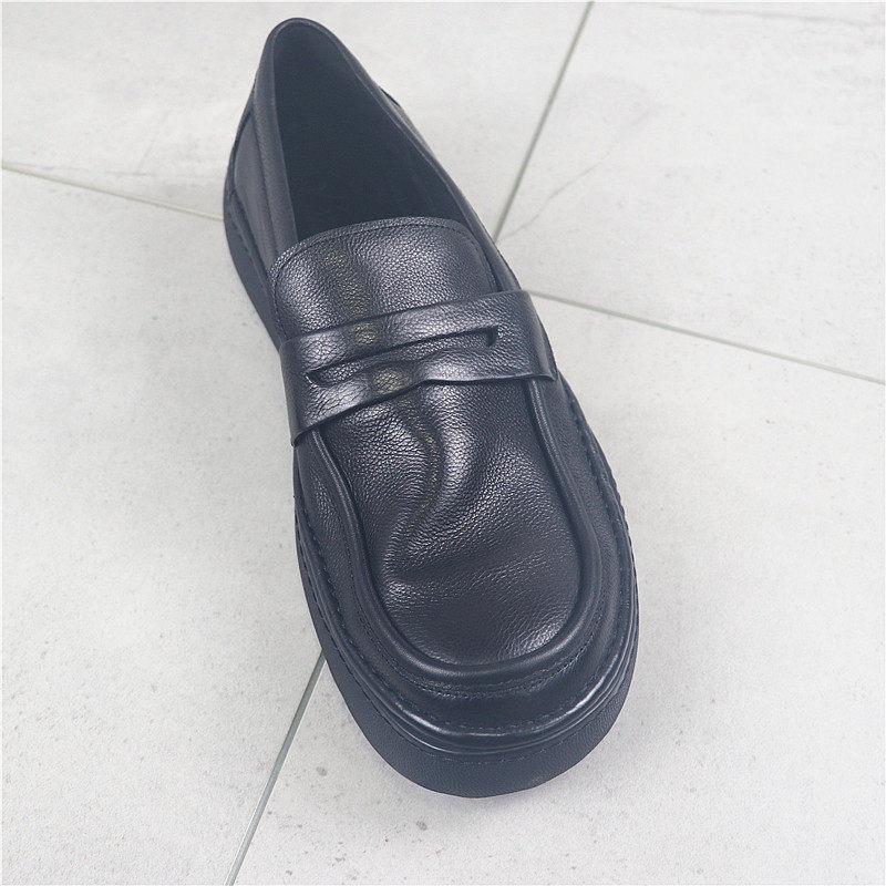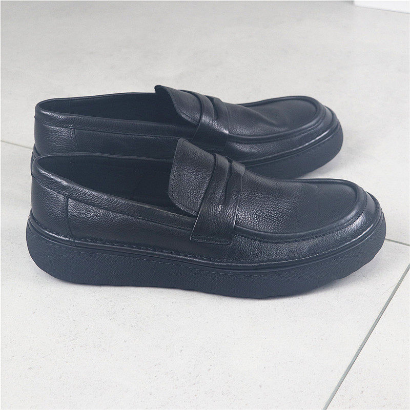 男鞋 3.5厘米厚底 头层牛皮套脚皮鞋 复古有型方头乐福鞋 好品质