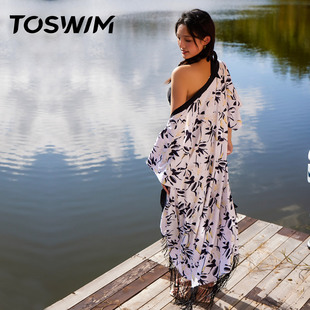 沙滩外套披纱裹裙时尚 外搭长款 水墨印花 防晒罩衫 TOSWIM泳衣女长袖
