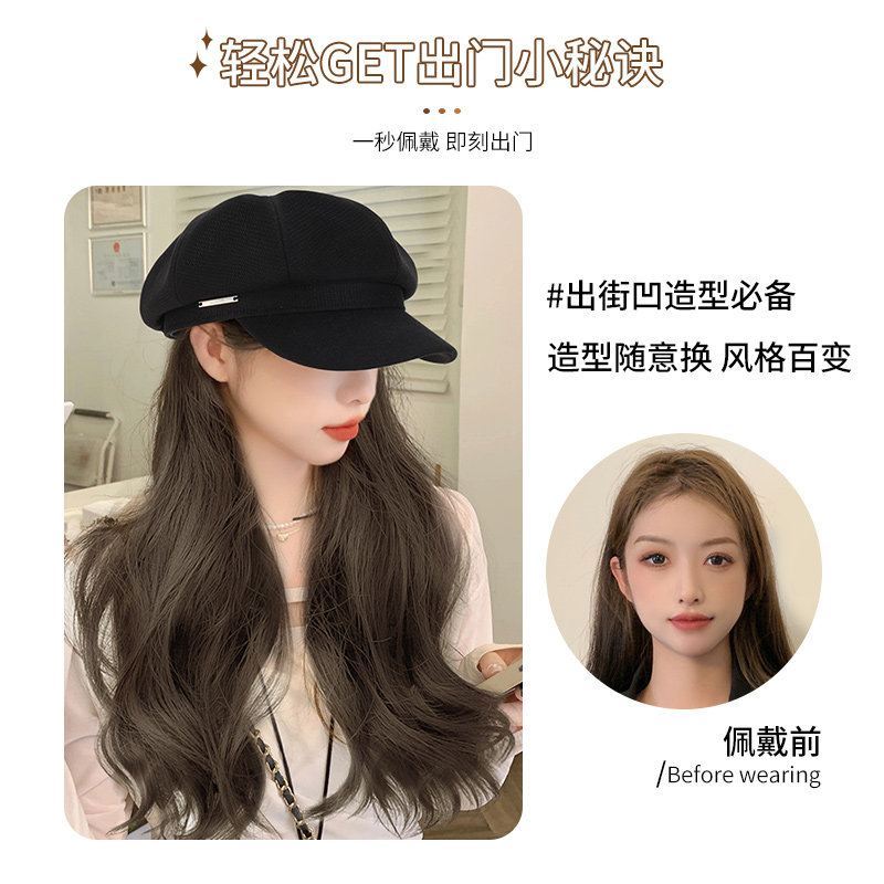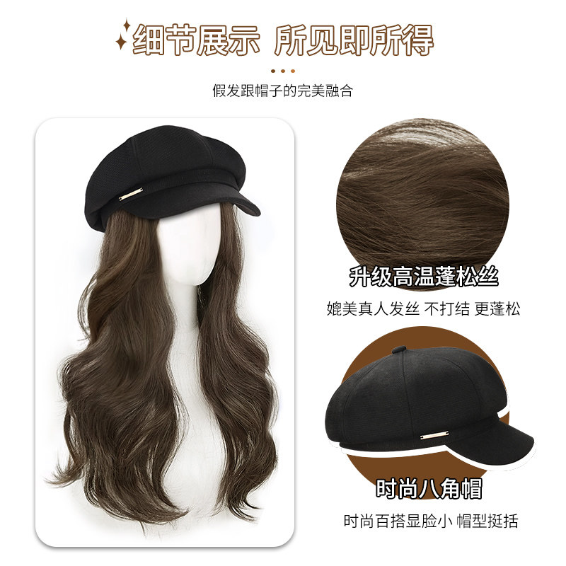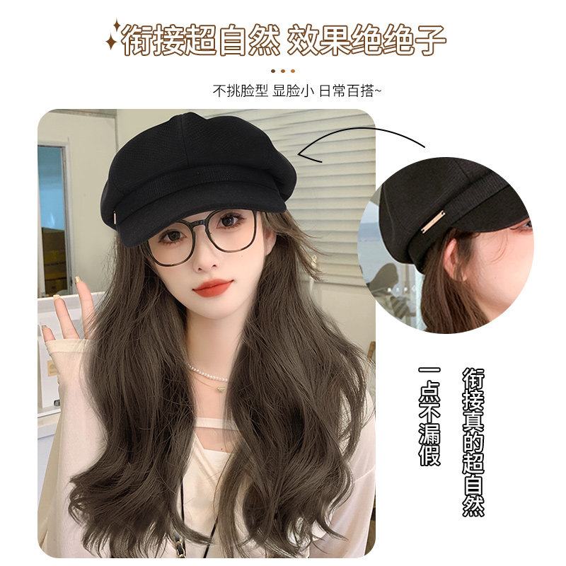 帽子假发女长发一体秋冬2025新款 贝雷帽仿真发全真人发卷发假发帽