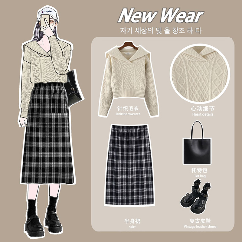 大翻领复古毛衣女秋冬高腰短款 粗毛线针织上衣 小个子软糯套头长袖