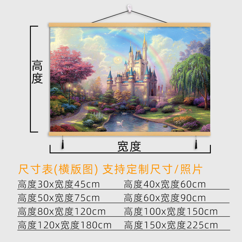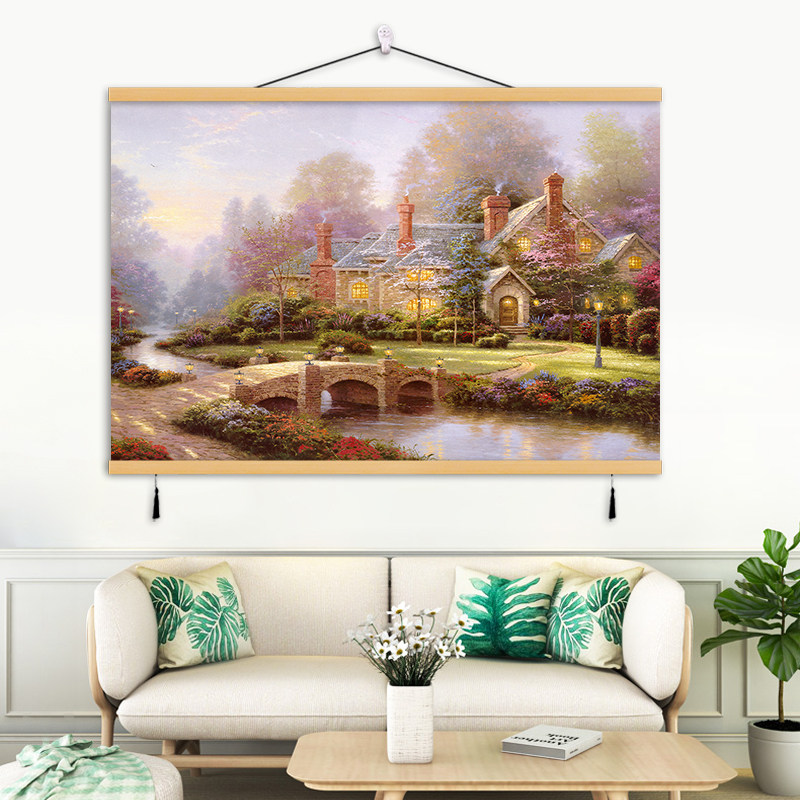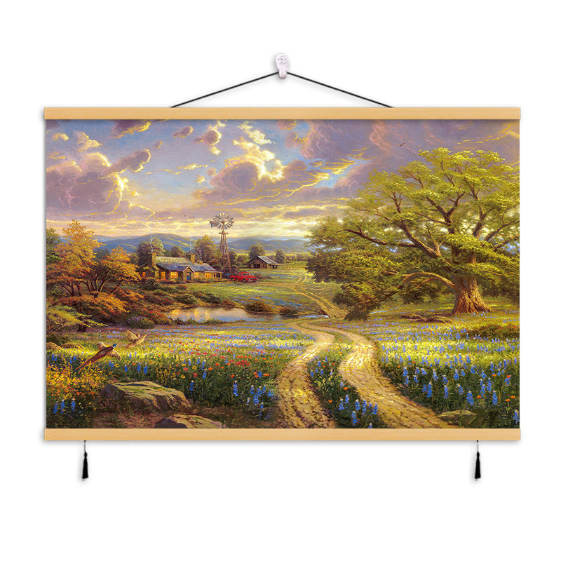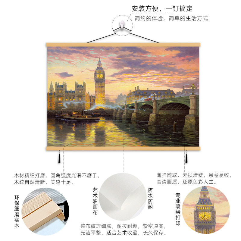 欧式 饰画免打孔墙画 风景油画实木布艺挂画山水画聚宝盆客厅沙发装