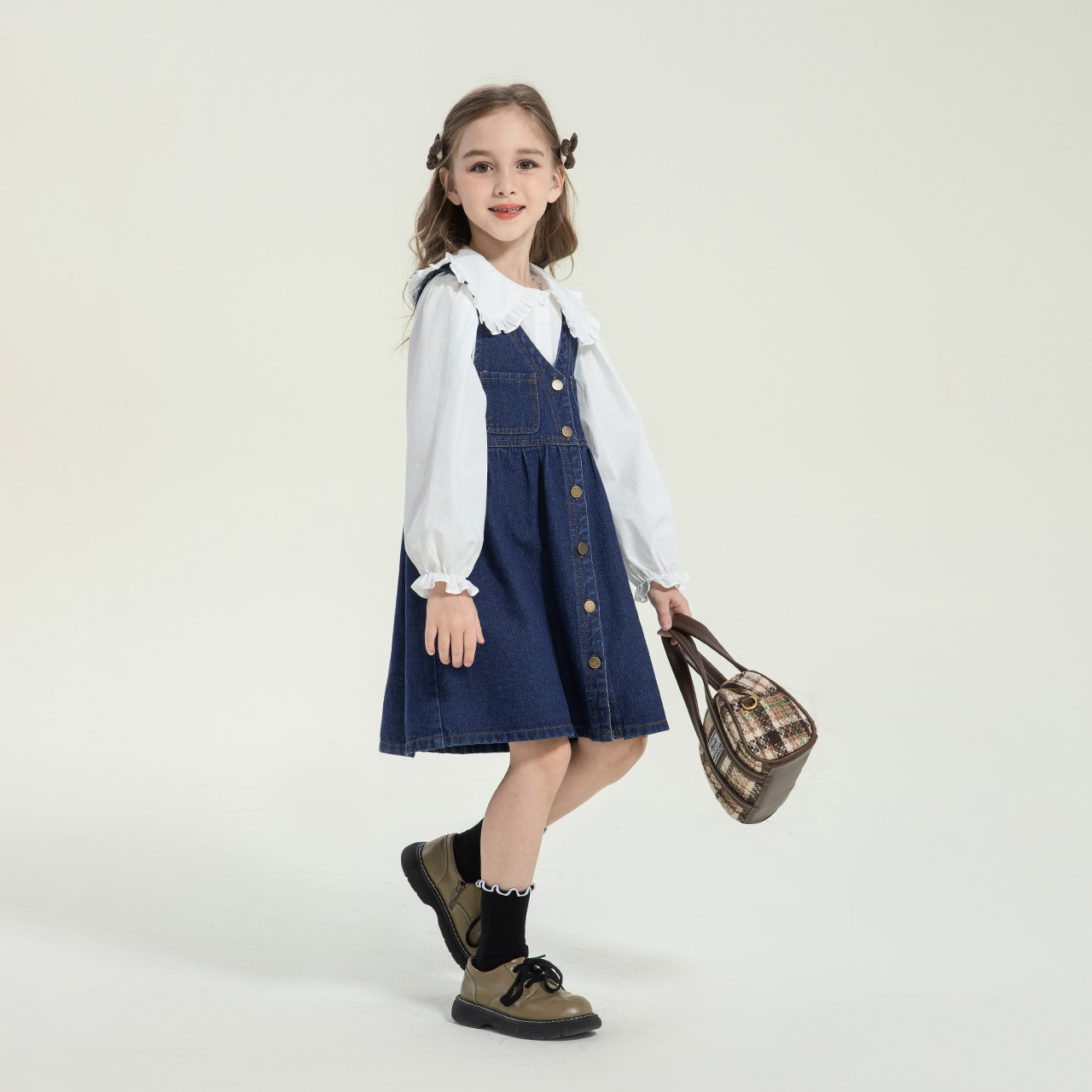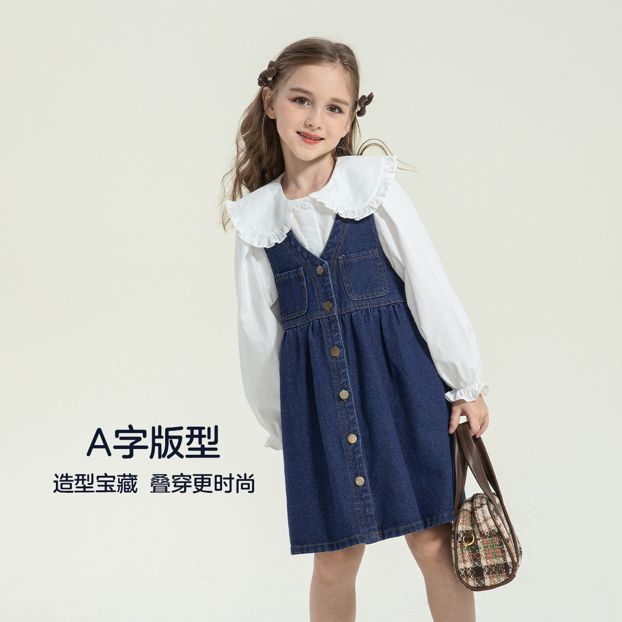 女孩背带裙儿童裙子两件套装 秋季 2025新款 左西女童牛仔连衣裙秋装