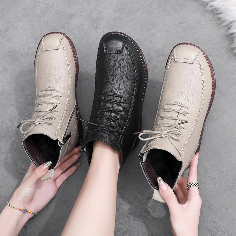 女士女鞋 加绒加厚马丁靴短靴真皮软底保暖棉鞋 2025新款 雪地靴冬季