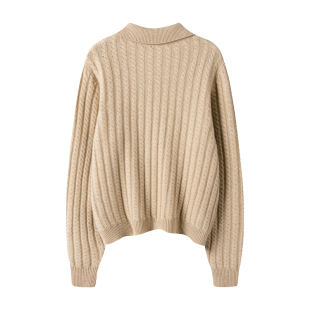 毛衣毛衫 加厚100纯山羊绒衫 时尚 翻领显瘦秋冬宽松短款 女开衫