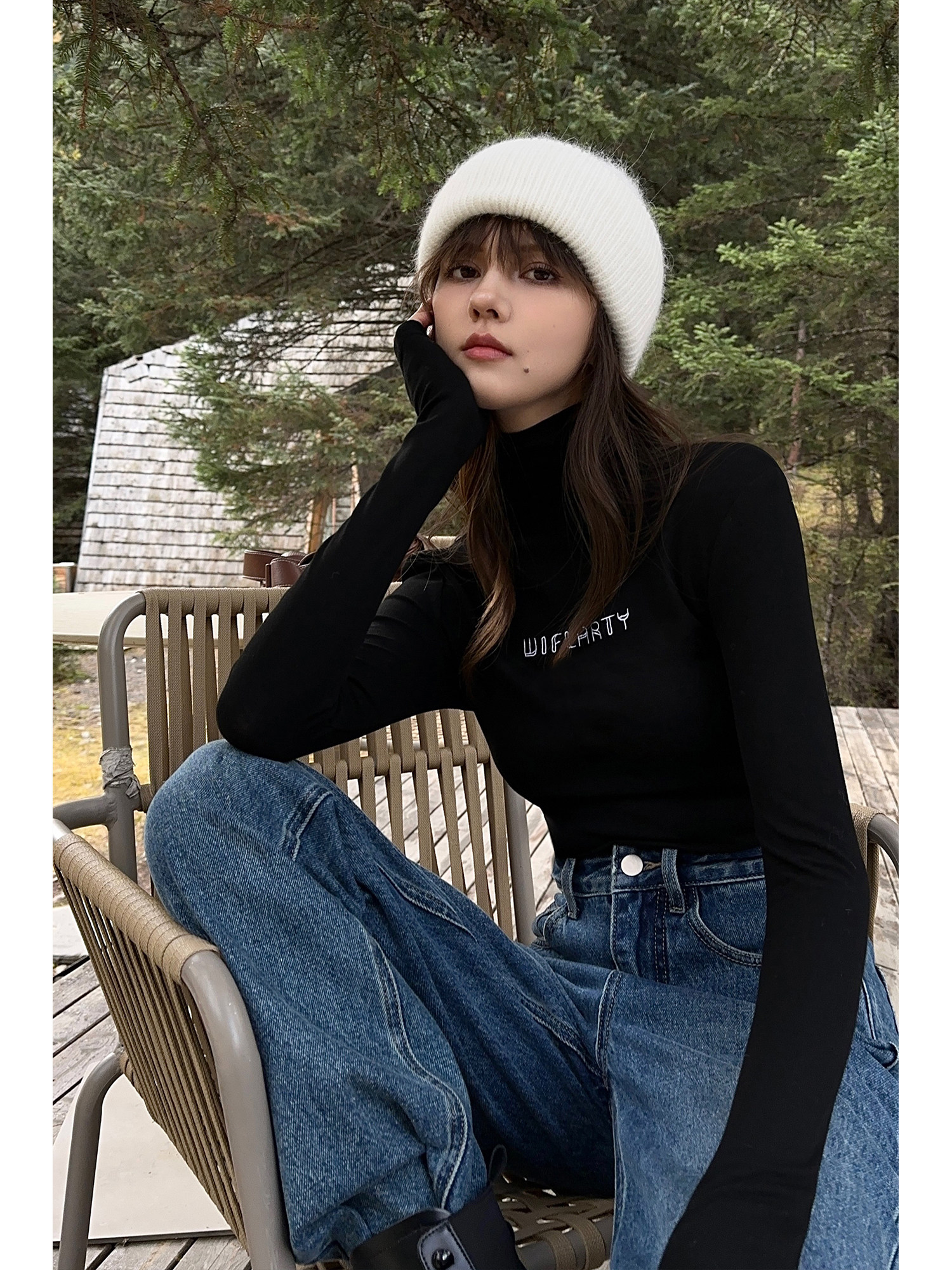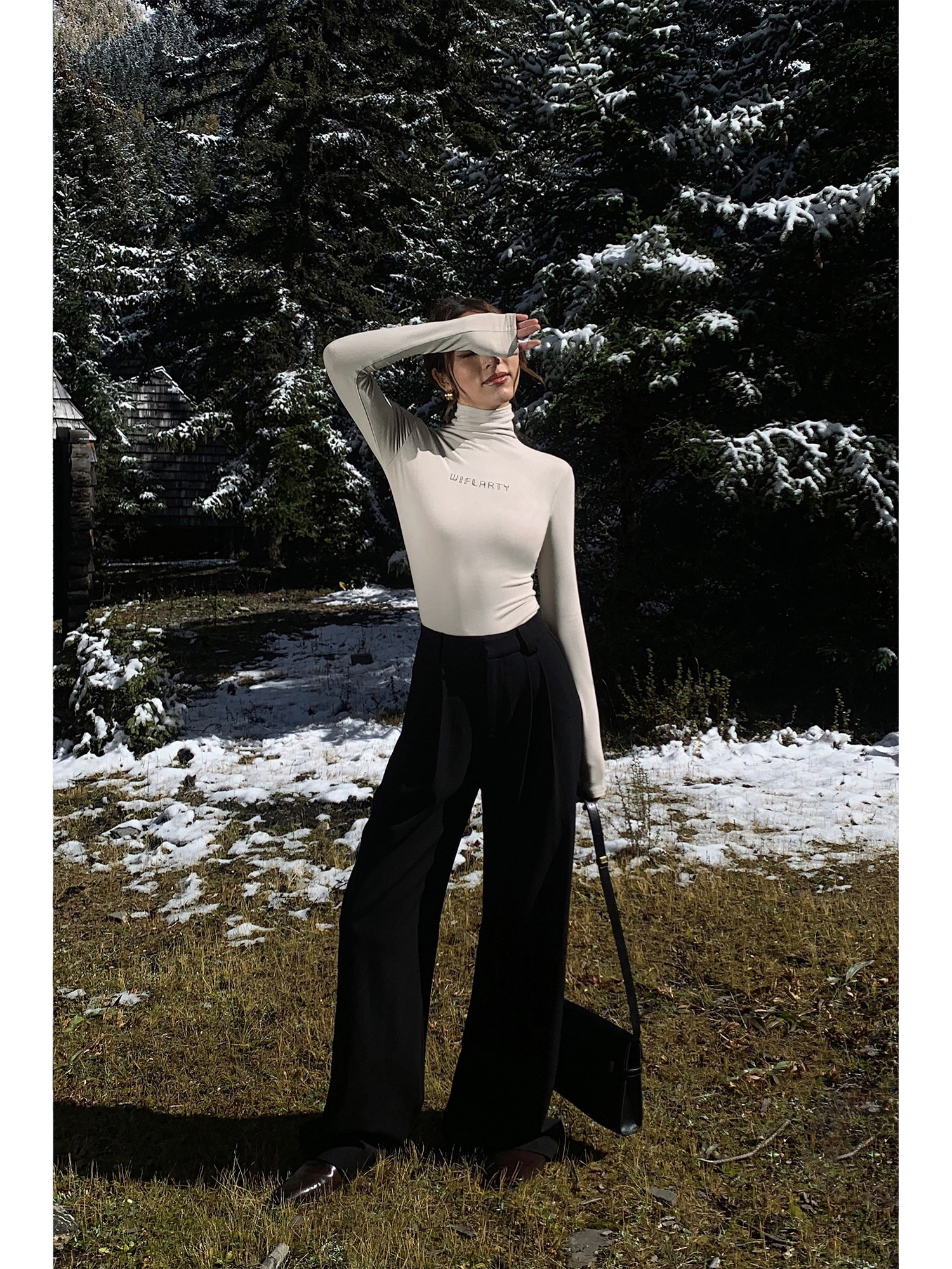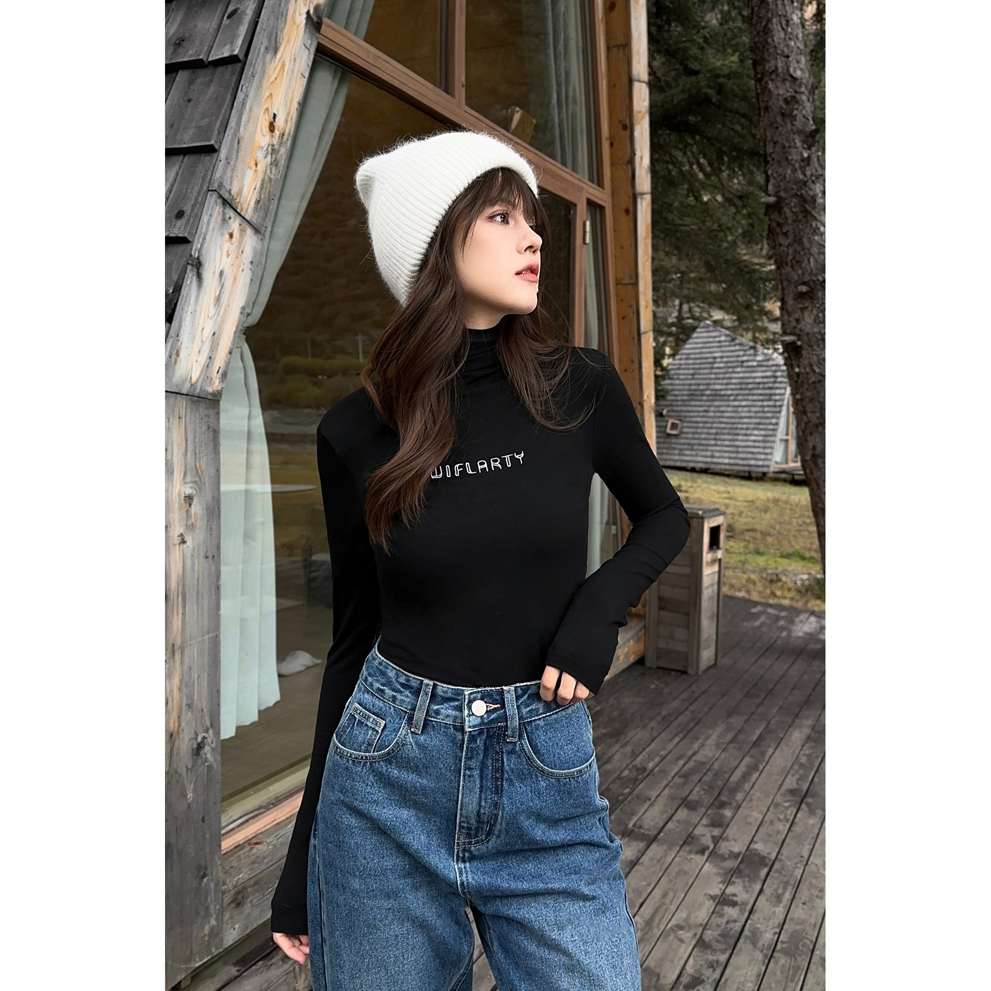 修身 现货6折 女百搭长袖 上衣 黑色高领针织内搭打底衫 NEVA