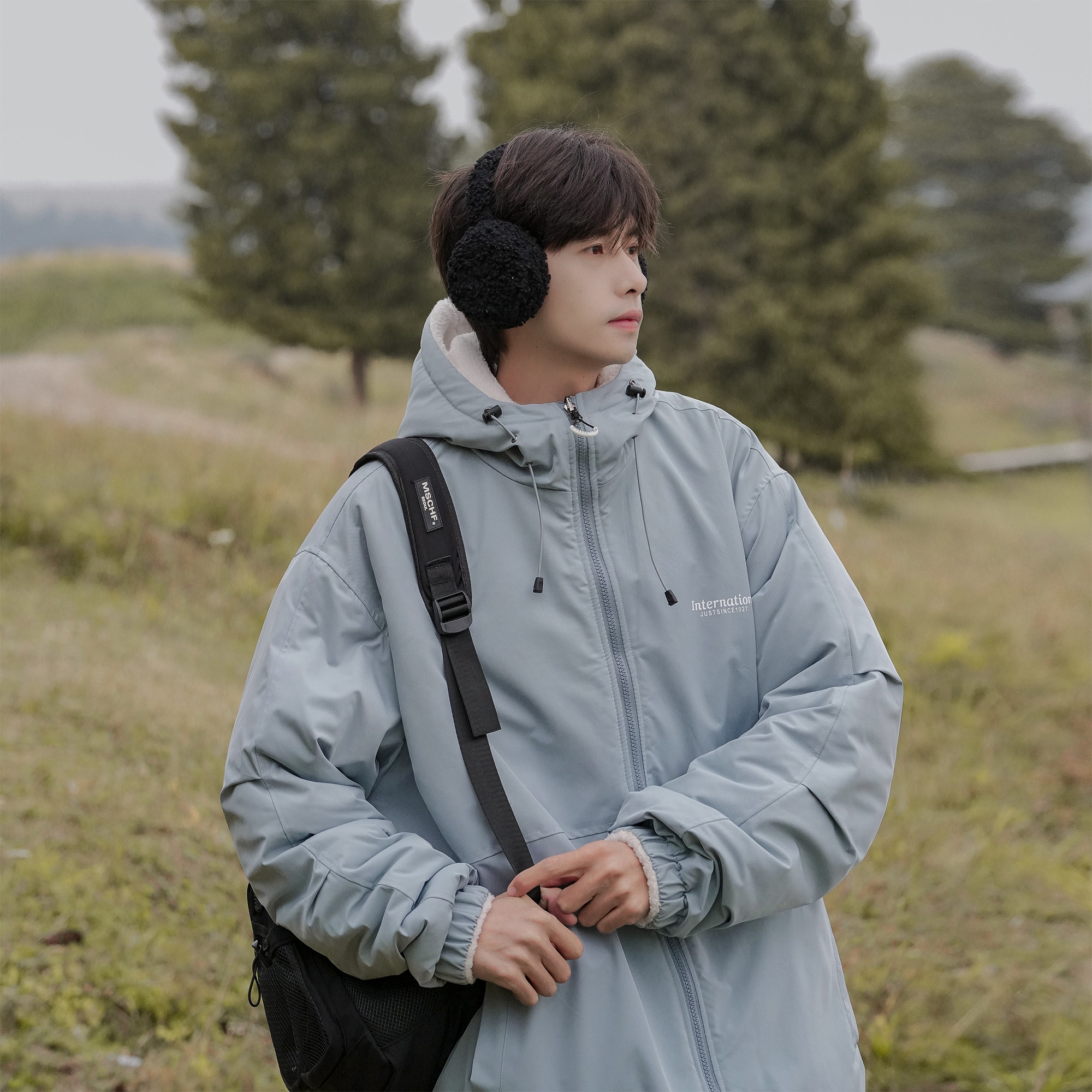 慵懒风派克服棉服 藏青色复古加厚夹棉连帽外套女胖mm美式 大码 女装