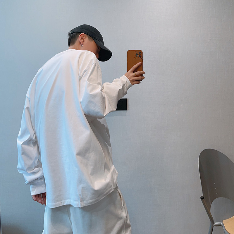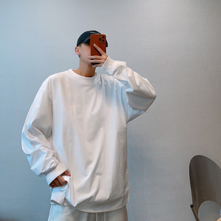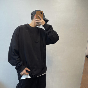 T恤男打底衫 dannyandzee秋季 潮牌百搭纯色235g棉二本针圆领长袖