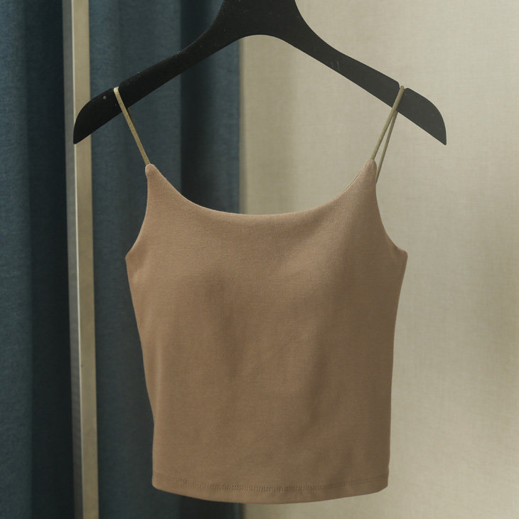 吊带女 性感内搭短款 新款 纯色棉料吸汗透气露背打底上衣带胸垫无袖