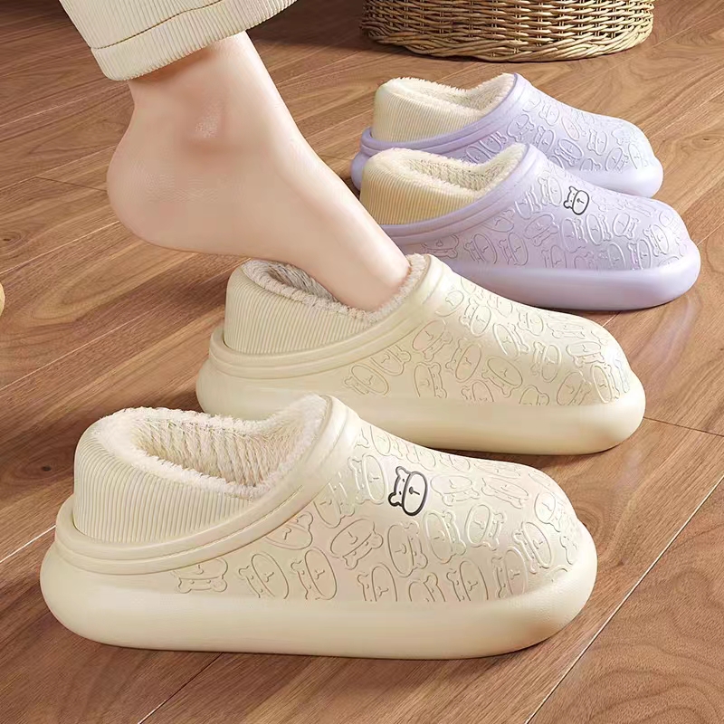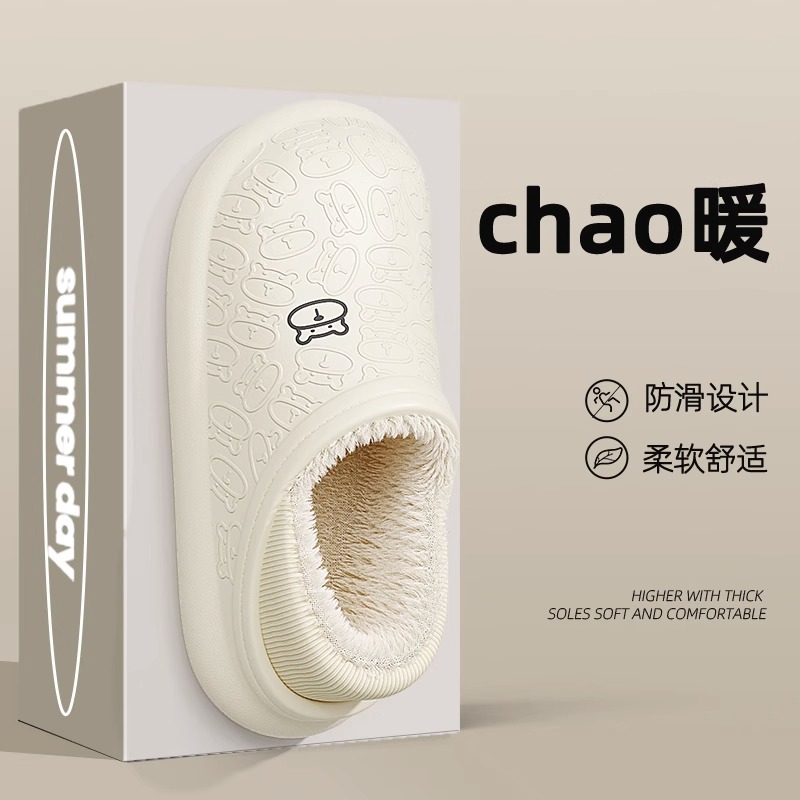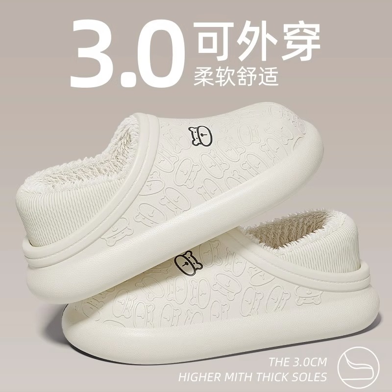 毛绒保暖踩屎感包跟棉鞋 防滑防水室内家居2023新款 女士冬季 棉拖鞋