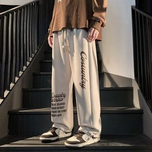 美式 秋冬2025新款 阔腿长裤 宽松男款 子 直筒卫裤 运动百搭休闲裤 男士