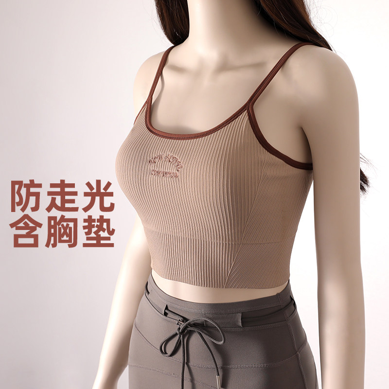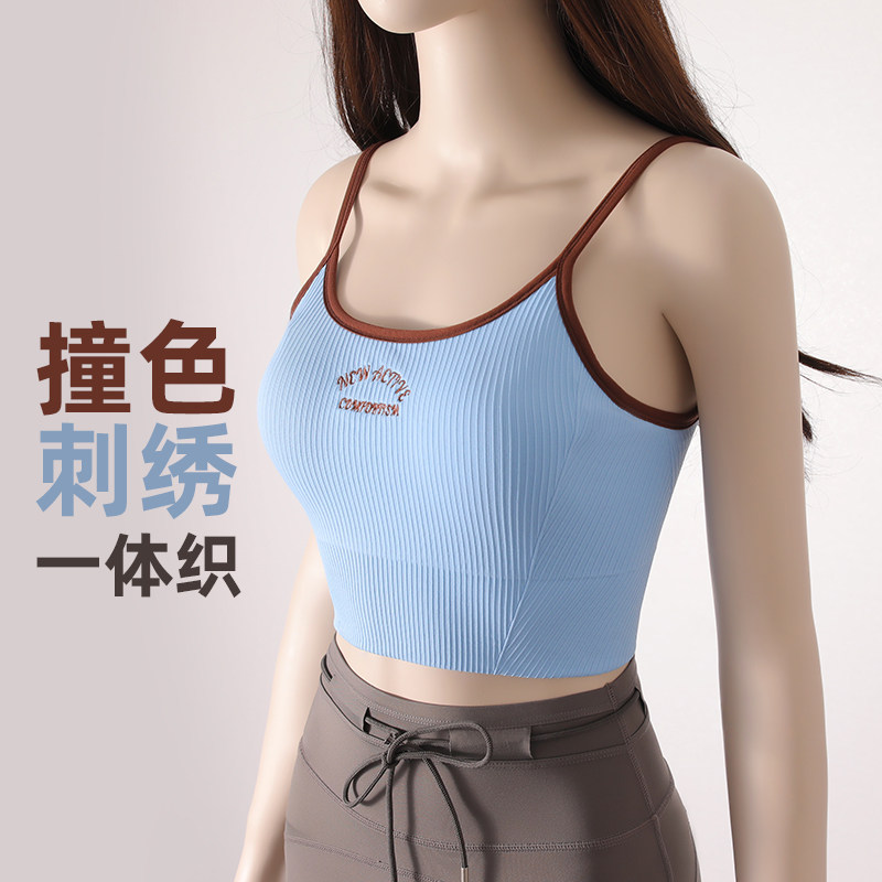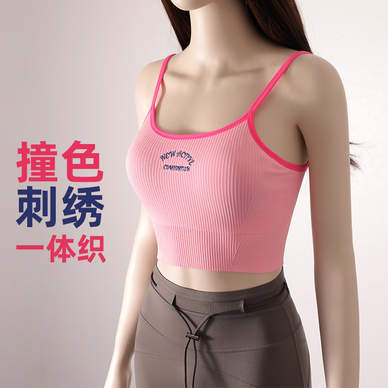 美式 复古运动背心无缝U型美背撞色低强度带胸垫瑜伽内衣健身文胸